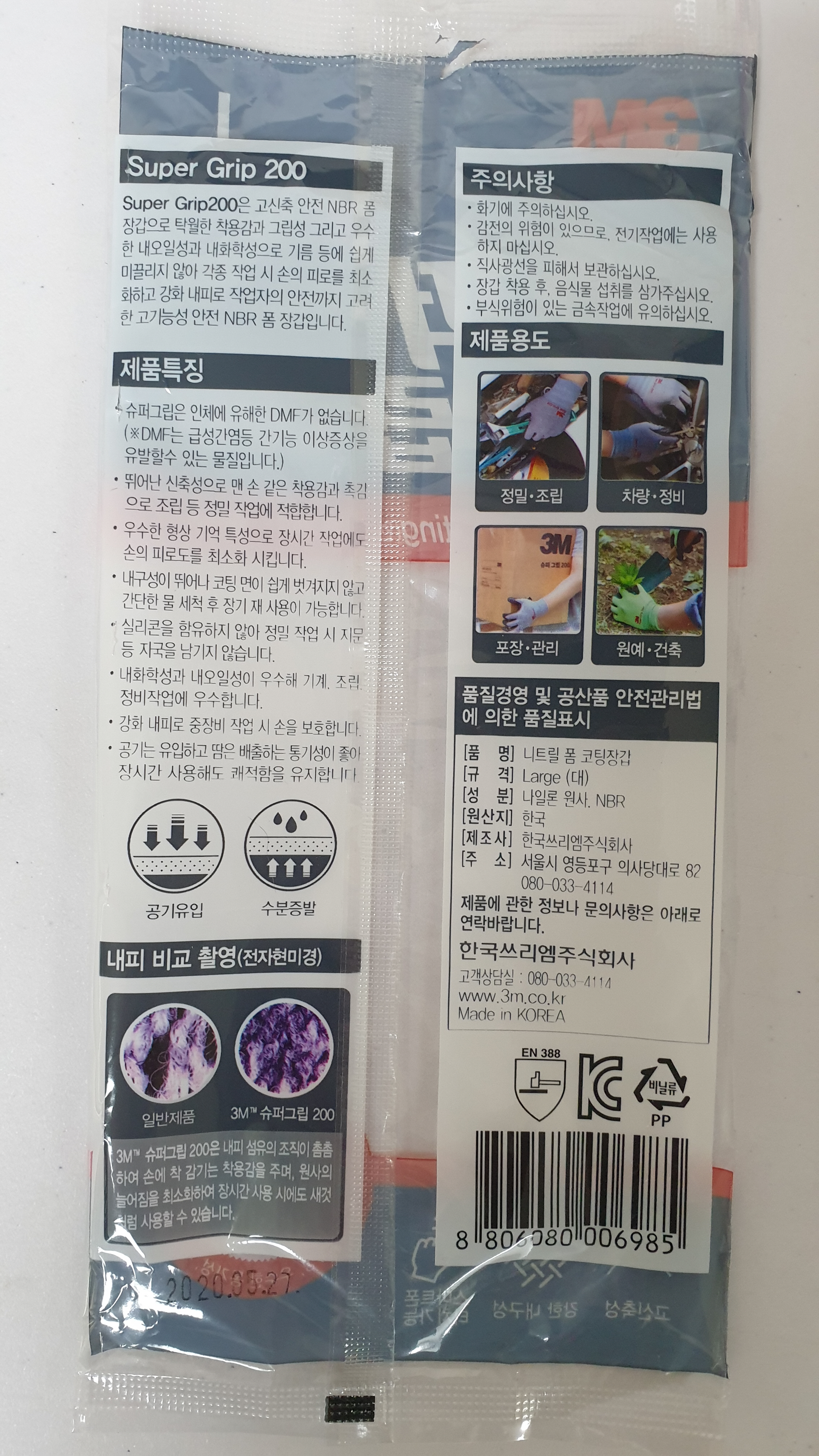 3m 슈퍼그립은 신축성과 내구성이 좋은게 가장 큰 장점이고, 일회용이아니라 찢어지지만 않는다면 세탁해서 계속 쓸 수 있다.