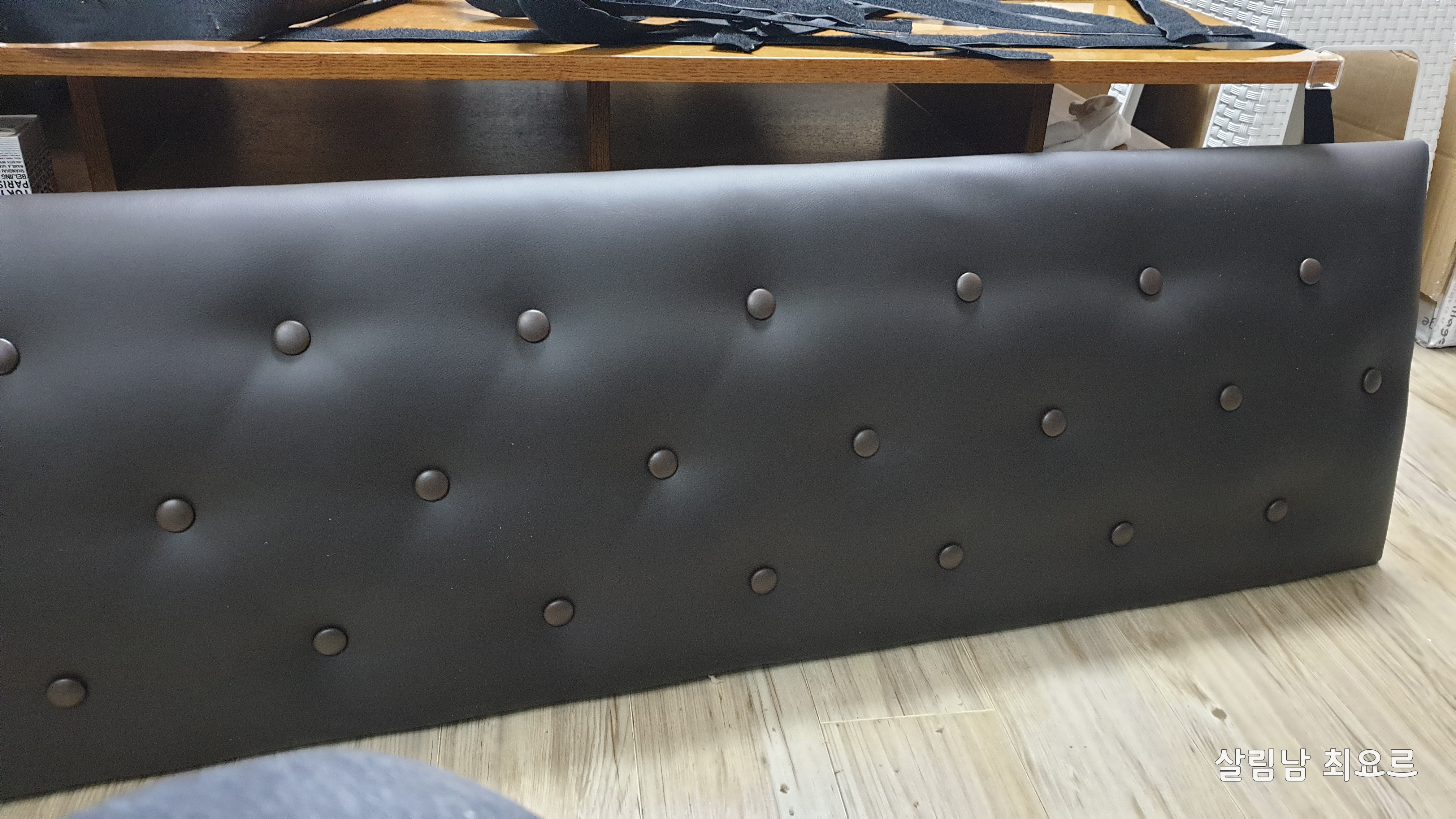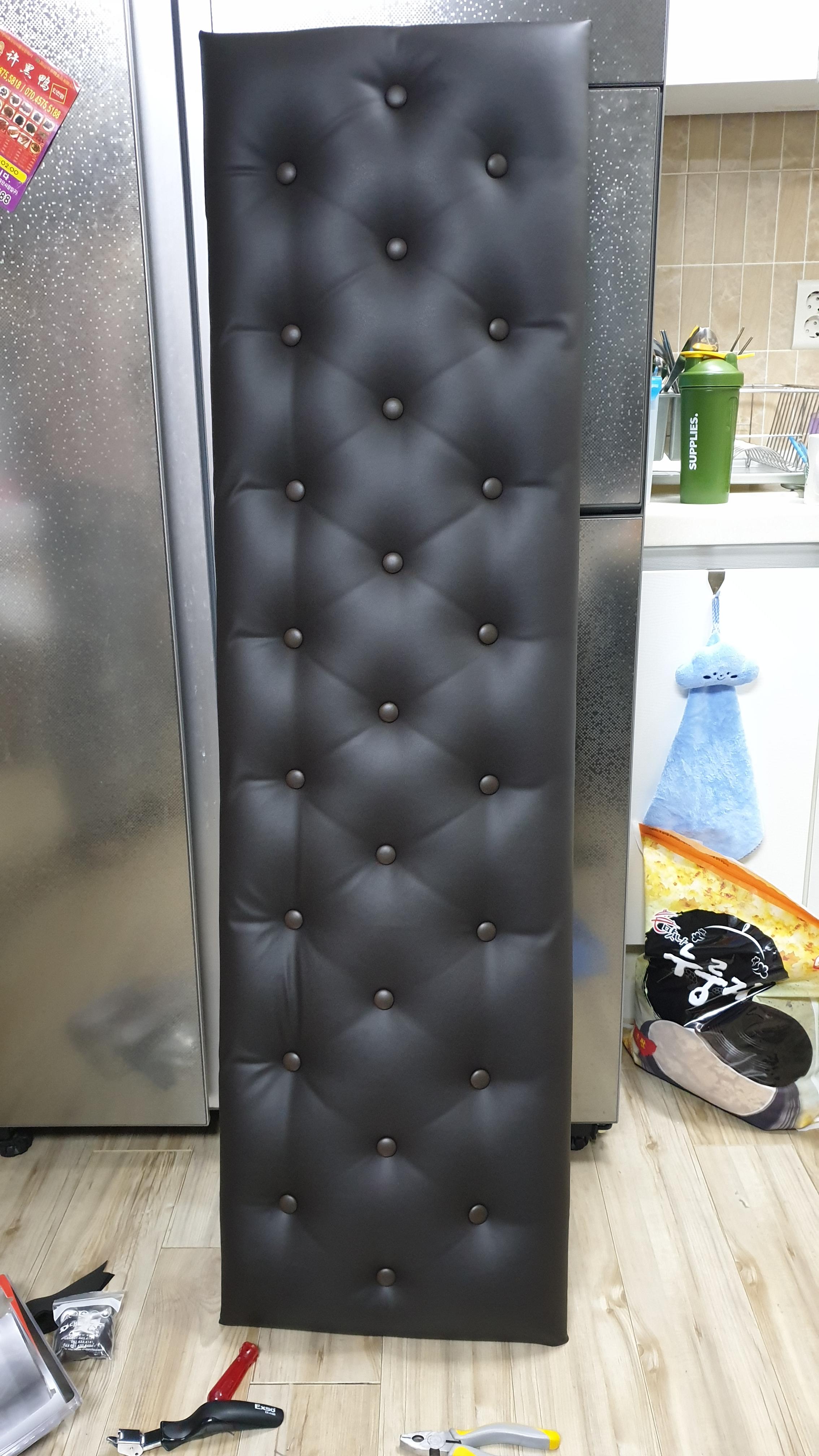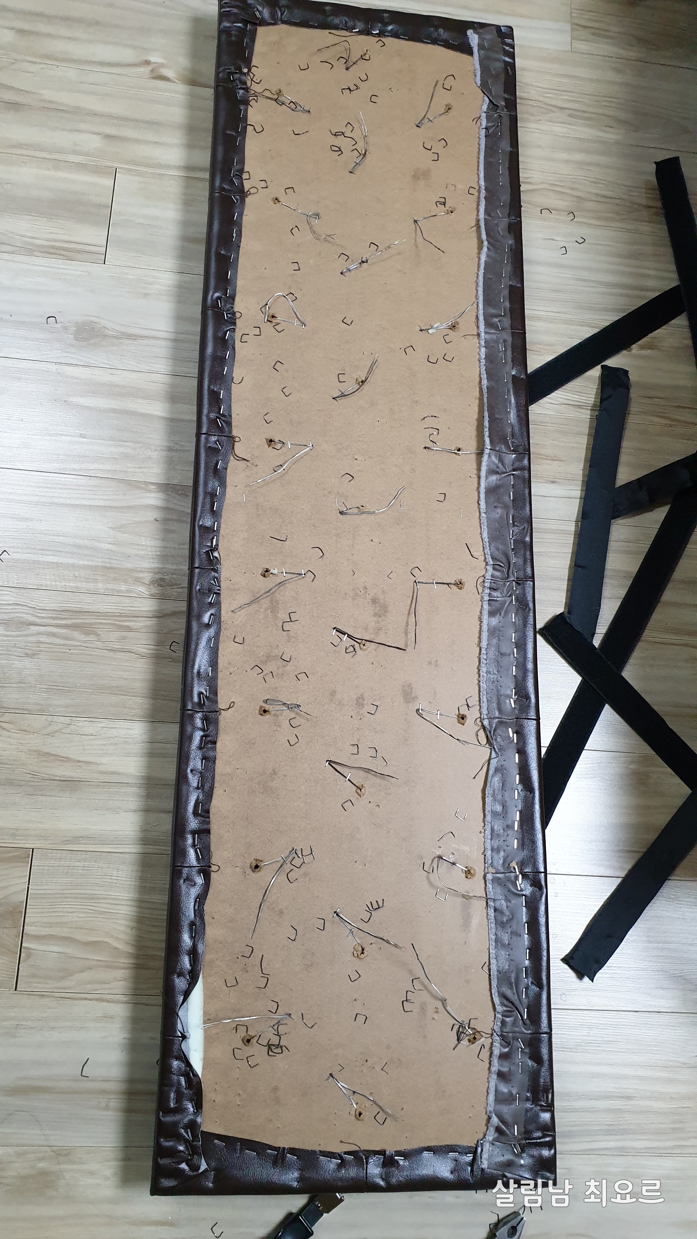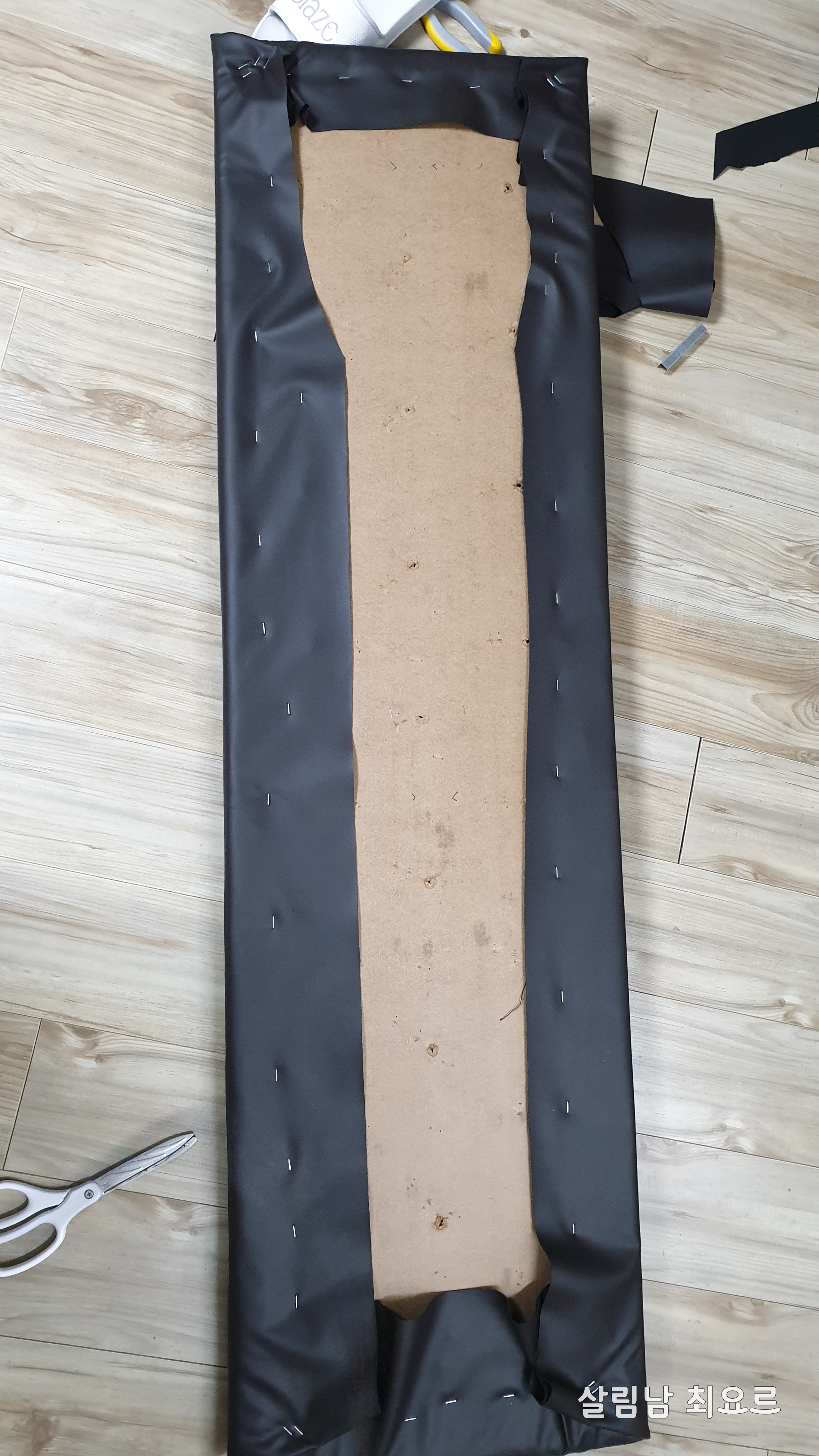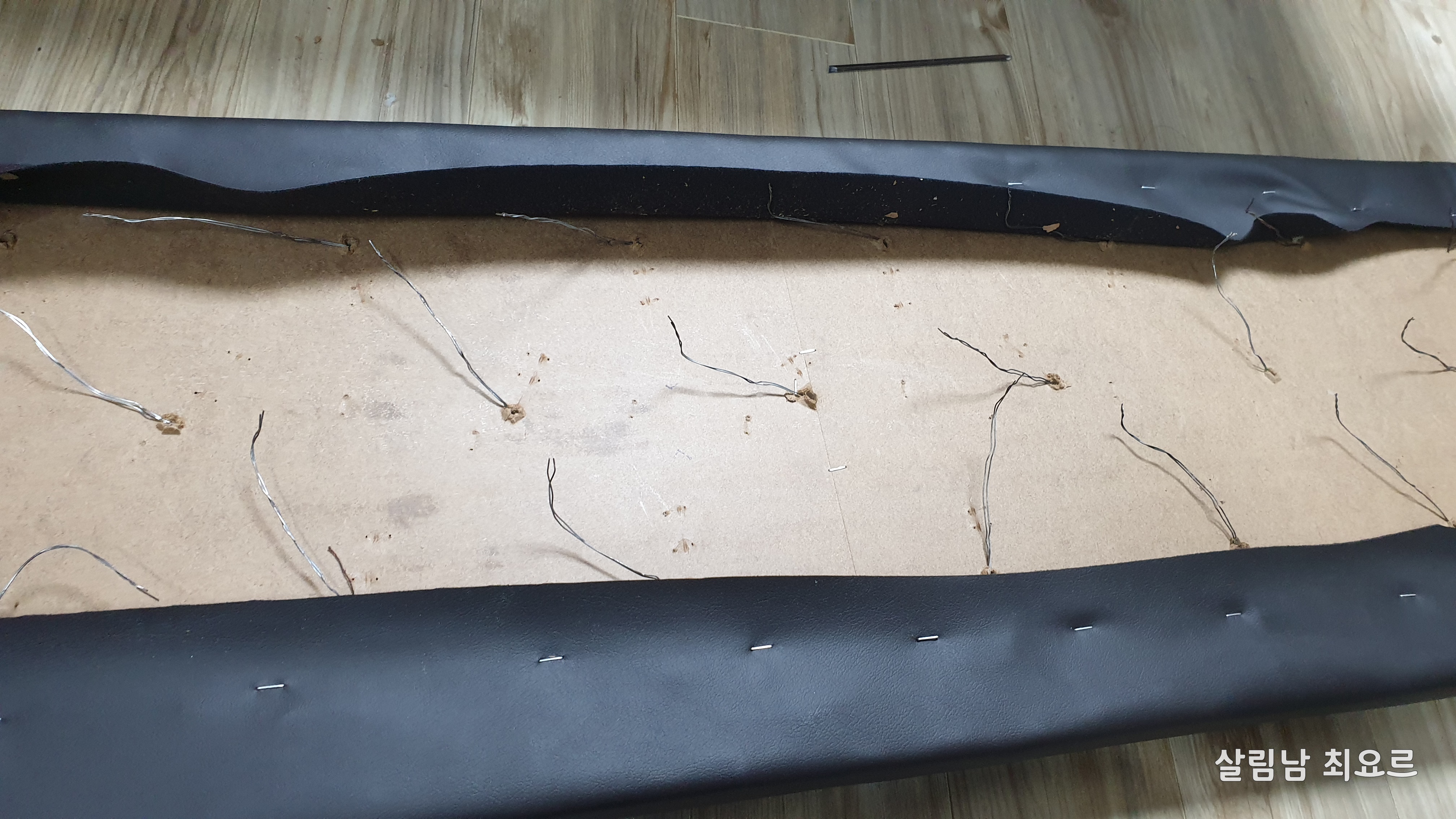 사실 가죽을 벗겨내고 새로운 가죽을 씌우려고 하였으나 스펀지 모양을 잡을 자신이 없었기에 덧입히기로 하였다.