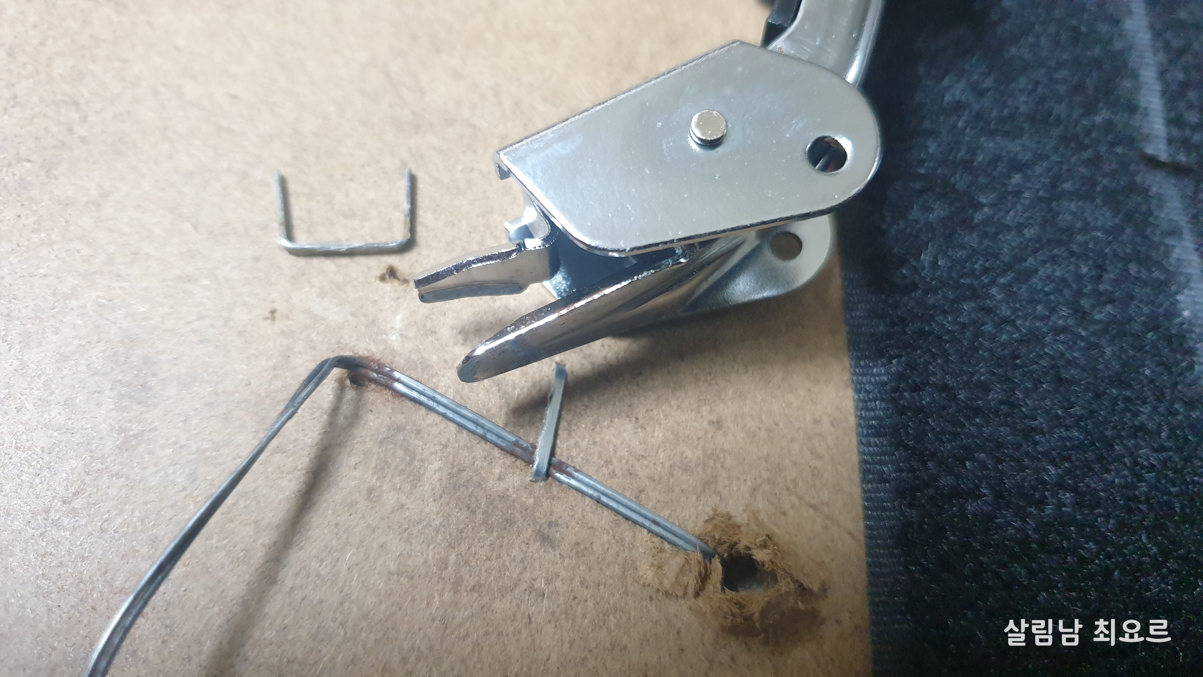 말이 쉽지 꽉 박혀있는 타카를 제거하는 건 꽤나 힘이 들어가는 작업이다.
