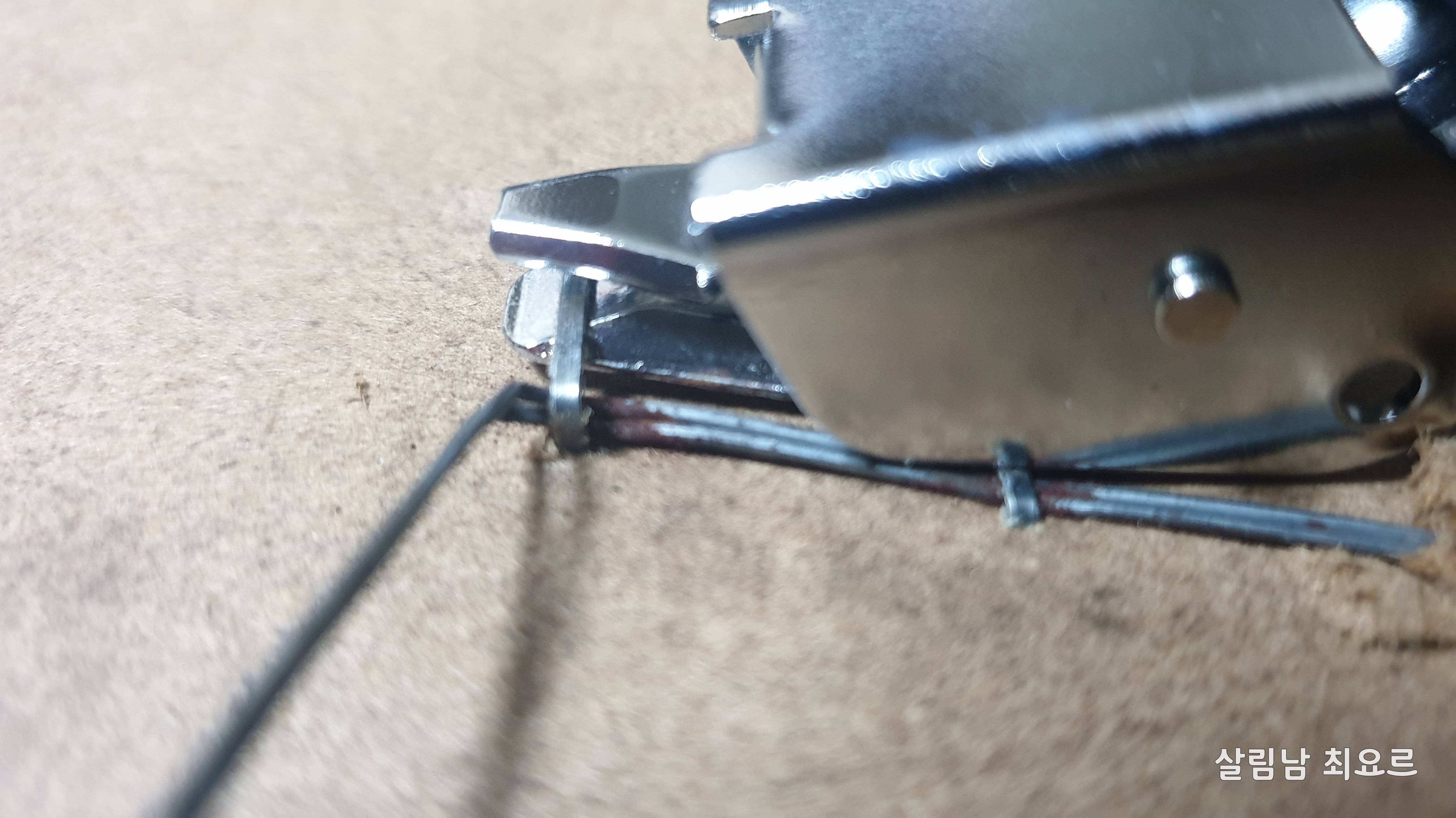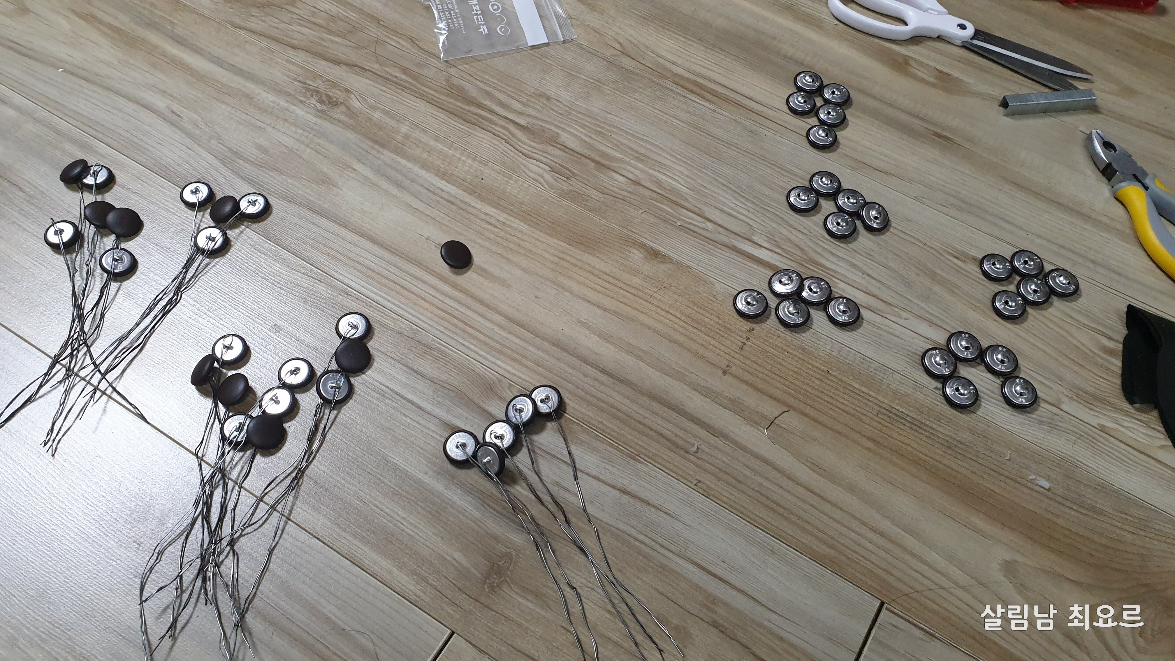 새로운 단추와 철사를 조립한다.