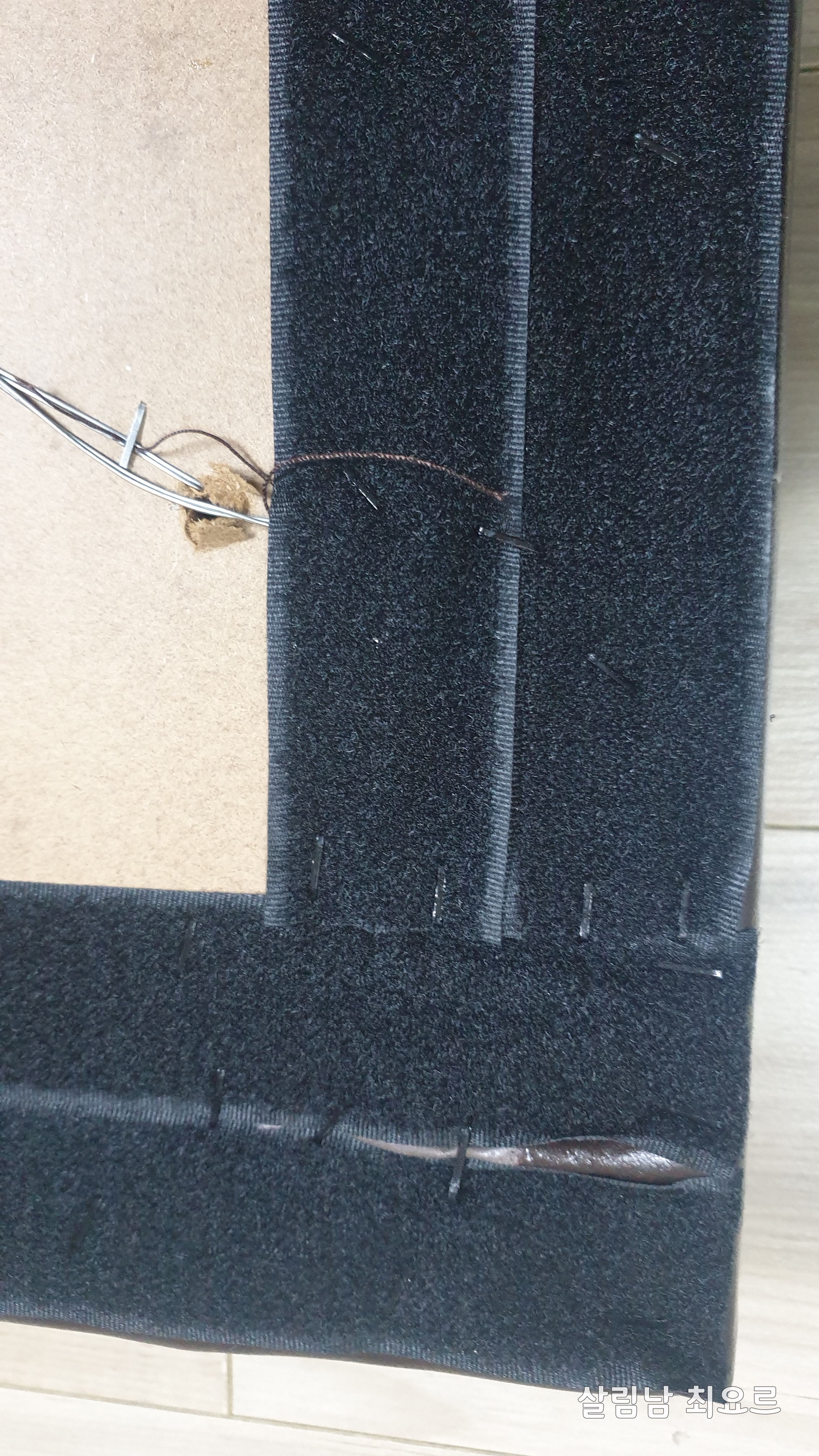 짧은 면 > 긴면 > 모서리 순서로 타카를 박아주었다.